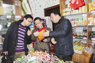昨天,市市场监管局稽查大队执法人员与江苏双鱼食品有限公司工作人员,对位于城区车站路、白马转盘附近等处的肉脯销售商家进行突击检查。与此同时,市市场监管局七个基层分局的执法人员,也对辖区内销售肉脯的商家一一进行检查。